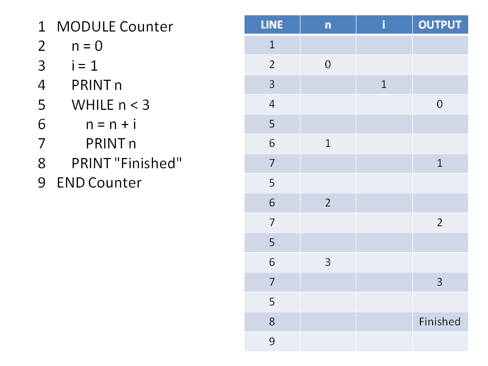 Trace table August 13, 2015 antony Programming, Programming, Programming, Year 11 Semester 1 0 Trace tables are used to test the logic in algorithms, they should come after creating pseudocode, not after applying the code in a programming language. Each line of the algorithm, variable, and output should be displayed in the table. Search